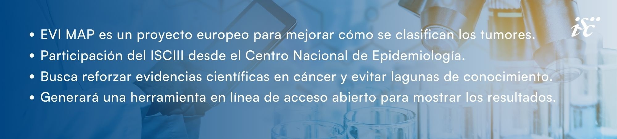 Un equipo del Instituto de Salud Carlos III (ISCIII) forma parte del proyecto europeo ‘EVI MAP, Mapping the Evidence for the WHO Classification of Tumours: a Living Evidence Gap Map by Tumour Type’, coordinado desde la Organización Mundial de la Salud (OMS) a través de su Agencia Internacional para la Investigación sobre el Cáncer (IARC).Esta investigación se lleva a cabo en colaboración con la iniciativa ‘International Collaboration for Cancer Classification and Research (IC3R) y está financiada por la Comisión Europea, en el marco del Programa Horizonte Europa, con una duración prevista de 4 años.