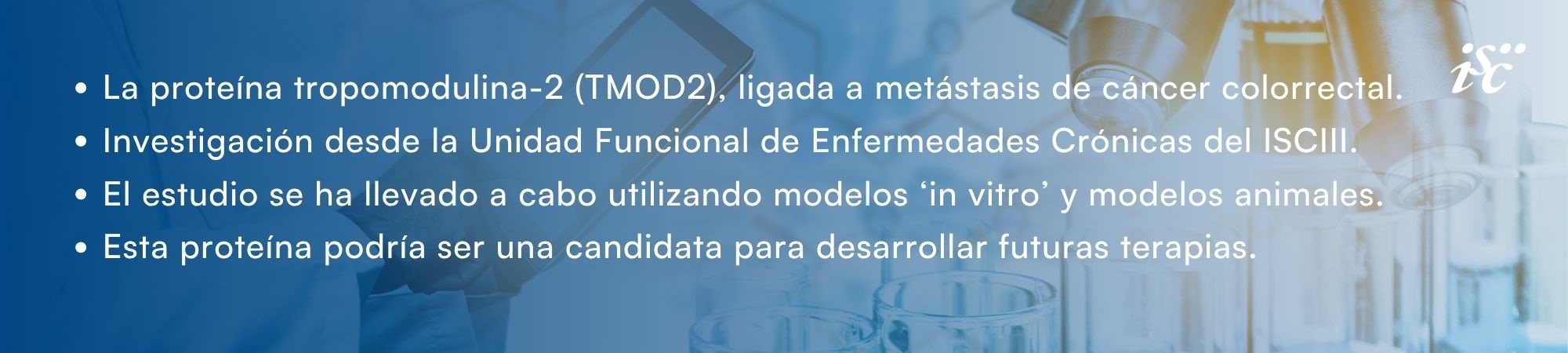• Referencia del artículo: Montero-Calle, A., Jiménez de Ocaña, S., Rejas-González, R. et al. Deciphering the central role of TMOD2 in colorectal cancer progression and metastasis. Br J Cancer (2025). https://doi.org/10.1038/s41416-025-03184-1.